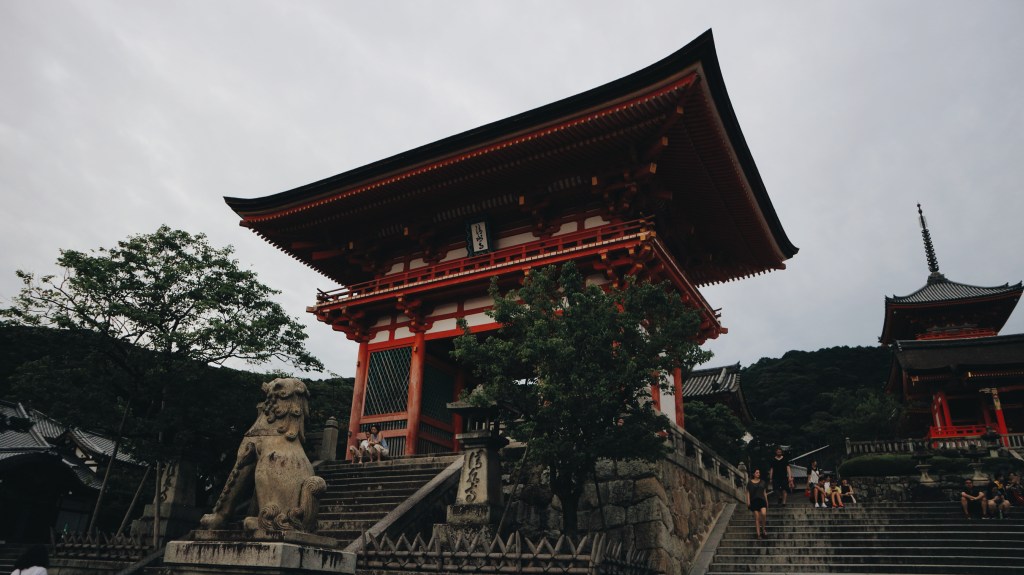 Not wanting to cut the tour too short, we loaded into another bus this time going East, to the Kiyomizu-dera, a contender with the Fushimi-inari shrine for the (cliched) image of Kyoto. The choice of our second destination was due, in part, to a miscalculation: the entire transfer easily took a full hour from the short window we had, as a lot of the establishments were closing as early as five or six. By the time we finally stepped inside the Kiyomizu-dera complex, the sun was on its way down, and my camera had already lost its battery. All my photos of the stage and the surrounding pagodas in the complex were taken the following day, when we decided to completely ditch the conference activities and take the one hour train ride going to Nara. Just as we completed the uphill walk through a neighborhood of traditional Japanese houses, a man with a megaphone was announcing that the site was closed.