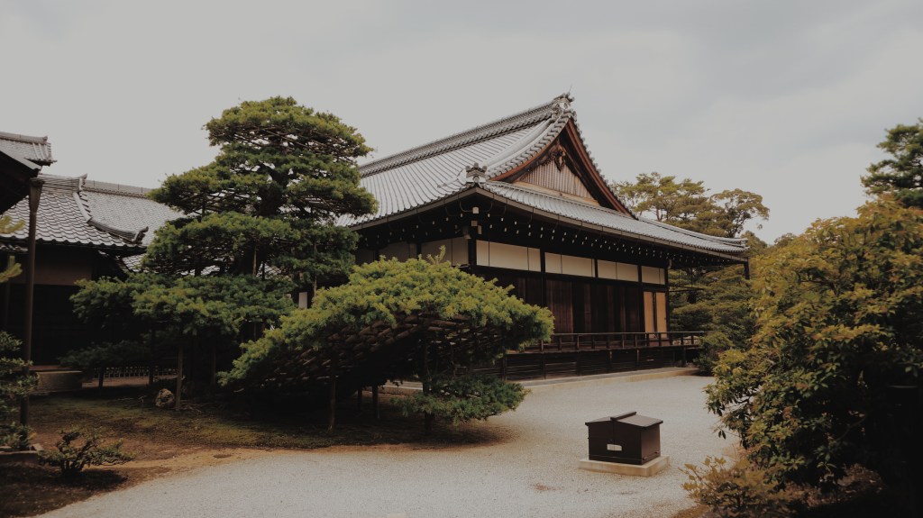 Tourists and locals mill about the garden. While photographs of the pavilion invoke a sense of meditative calm, in truth the scene is noisy with low murmurs and the incessant clicking of smartphone cameras. As this was in July, the day blisteringly hot despite the typhoon just three days prior, many of the visitors have donned their yukatas, the traditional Japanese summer clothing. I ask my friends to take a photo of me with two locals, who accept my request with a smile, even though I hardly even knew their names, or they mine. After shooting a few photos of them and us together on my camera, they insisted on taking some photos with their smartphone as well. Then they gave me and my friends a welcome in giggles and smiles, and we expressed our adoration of their country. I would have preferred to stay around, to take in more of the strolling garden and the relatively modest architecture of the neighboring priest’s quarters, but the swell of tourists kept pushing us onwards, until – too soon – we were back at the complex gates.