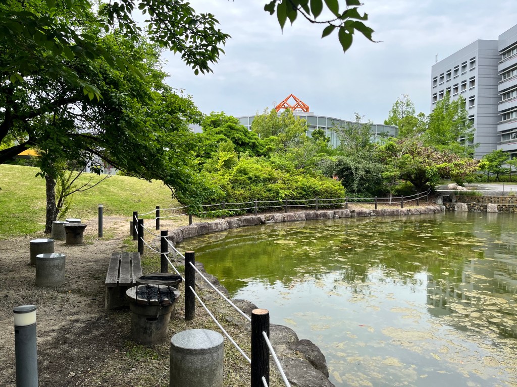 I spent yesterday the way I’ve come to enjoy my Sundays. After a breakfast of coffee, three croissants and a few slices of French brie (bought at the Aeon mall during their pre-closing discount), I made use of the early morning to catch up on some light work. I didn’t bother cooking. When lunchtime rolled around, I took my kindle, wallet, and apartment keys with me and strolled to the konbini for a light lunch. I had two onigiri and some convenience store fried chicken. Outside the convenience store, I found a vending machine selling small cups of sparkling lemonade for a hundred yen each. From there, I then made my way to the university’s koi pond.